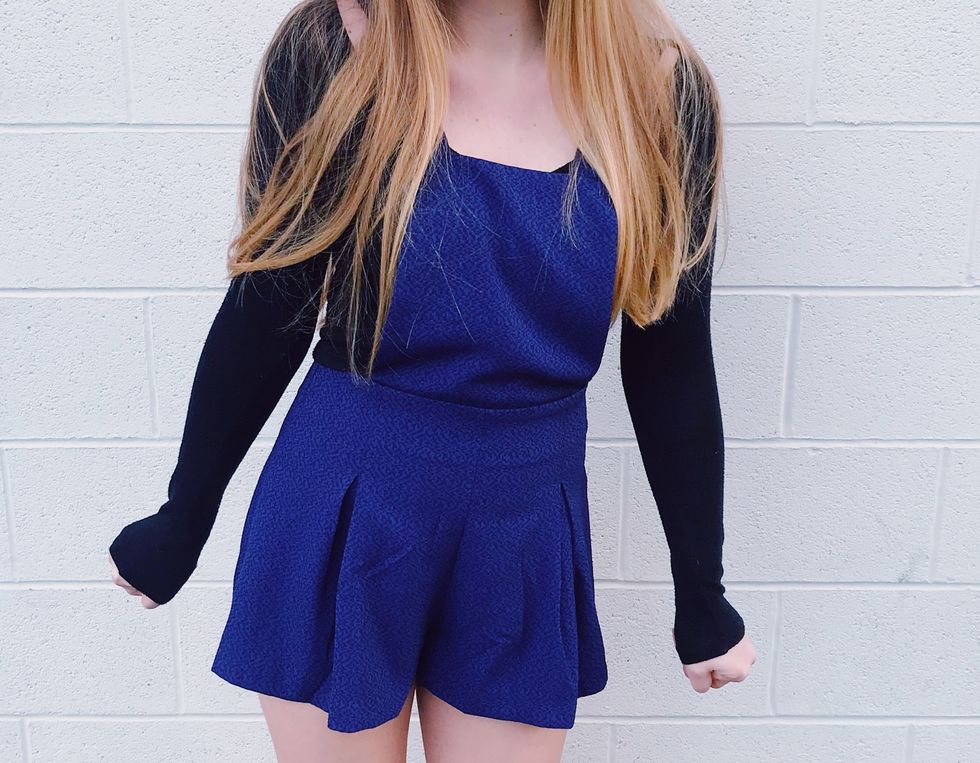 Outfit #1: Navy Overall Romper: Boutique in California (similar ones at Forever 21!), Black Longsleeve Crop Top: Forever 21