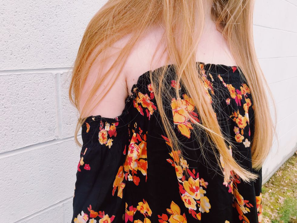 Outfit #6: Floral black off-the-shoulder dress: Marshalls