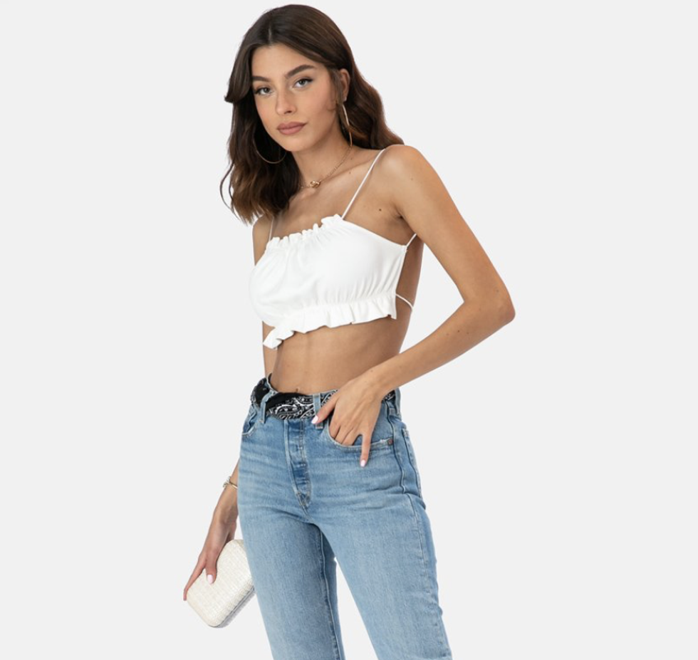 This top is called the "Mckenny Crop Top." I don't typically wear open back shirts, so this top was definitely out of my comfort zone. The medium did fit in this one, but the straps were placed awkwardly close to my armpits because of the open back. I am debating returning due to the straps, but the shirt is still cute and good quality.