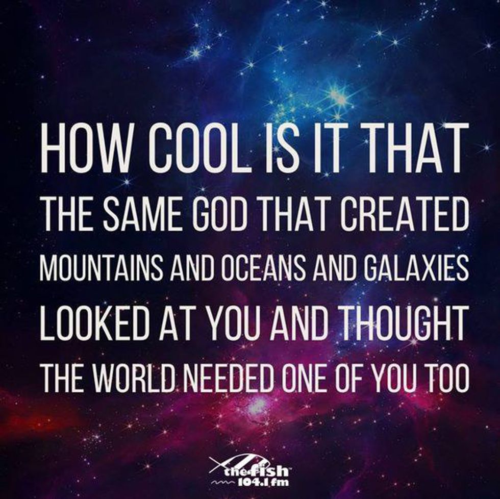 The most incredible part of all, though, is that the same God who hand-crafts each sunset, sculpts every mountain, and makes the waves dance to and from the shore decided long ago that the world would be incomplete without you in it. He sees the same beauty in you that is in every sunrise and every breaking wave. The greatest artist I have ever known chose to give you life because His plan includes you. I don't know about you, but I think that's pretty amazing. I praise you because I am fearfully and wonderfully made; your works are wonderful, I know that full well. — Psalm 139:14