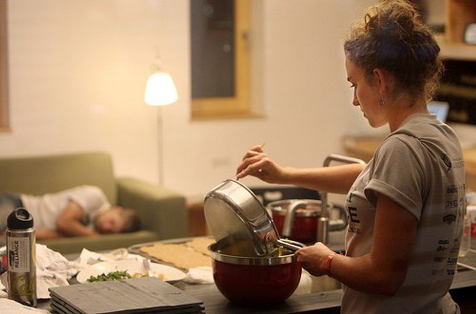 While living on your own, you can't run to the dining hall real fast before your night lab to grab dinner. Dinner is now a real struggle.You have to make sure your Walmart run resulted in a healthy balanced diet for the week, not just junk food and random impulse buys. You still have to actually cook dinner. While ordering pizza every night is easy. It gets expensive real fast.