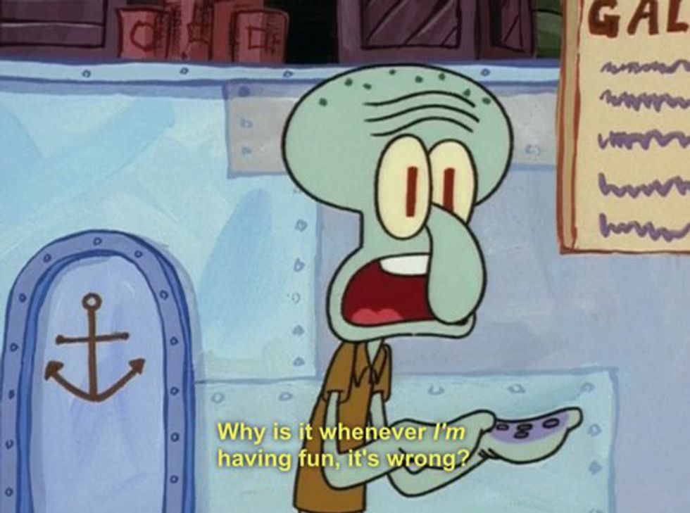 The Nickelodeon show "Spongebob" has rightfully earned its place in pop culture, easily recognizable by children and adults alike. The character of Spongebob, none other than the protagonist obviously, has earned his place in our hearts as the bubbly Sponge who won't take no for an answer and is always trying to seek the next adventure. However, his fellow character Squidward has earned a rep as a pessimist who wants nothing more than to be left alone, especially by Spongebob. As we get older though, are Squidward's observations of life really so unrelatable and inaccurate, though? Below are some examples of Squidward just saying what is on his mind.
