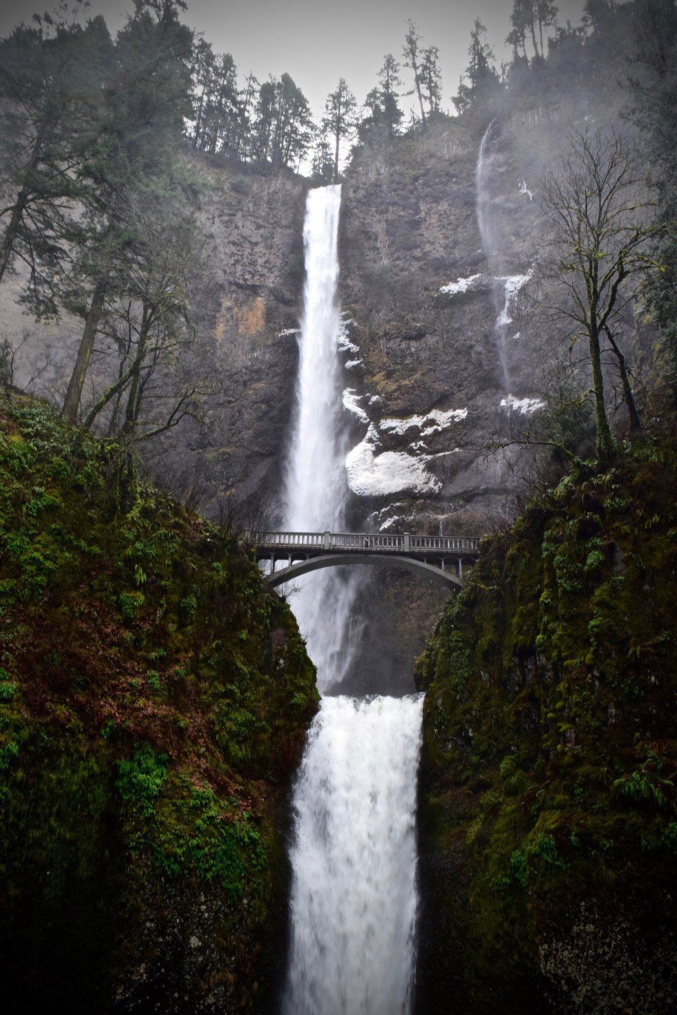 I remember crossing a bridge at what I thought was the half way point. The bridge was drenched in water and slowly formed a sheet of ice. Water droplets turned into icicles on the ornate pillars of the bridge while I heard the shutter of my Nikon. Attempting to take pictures, mist spraying at my face, wind howling at my back, I felt calm. The calm you can only feel when in nature’s paradise.