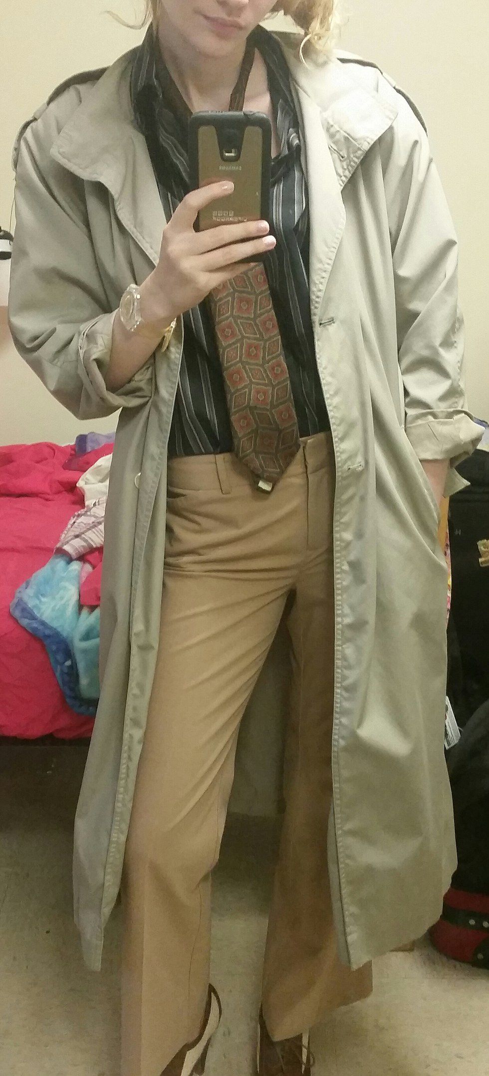 I picked which pair of pants fit the best and my Holtzmann outfit was complete in one thrift store trip. I couldn’t believe my luck. Trying on the items all together I felt like I was playing dress up with my dad’s clothes, and this my friend, meant I was doing it right. I also felt strongly connected to Kate McKinnon and her character. That is the point of cosplay. Having fun and geeking-out is way more important than getting every detail right.