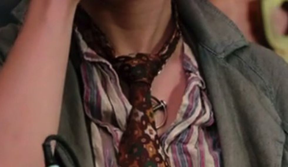 My friend Chloe immediately found the perfect tie hanging above the bin, but honestly every thrift store bin in the country probably has a tie that will be Holtzmann enough if you are willing to stray from the exact pattern.