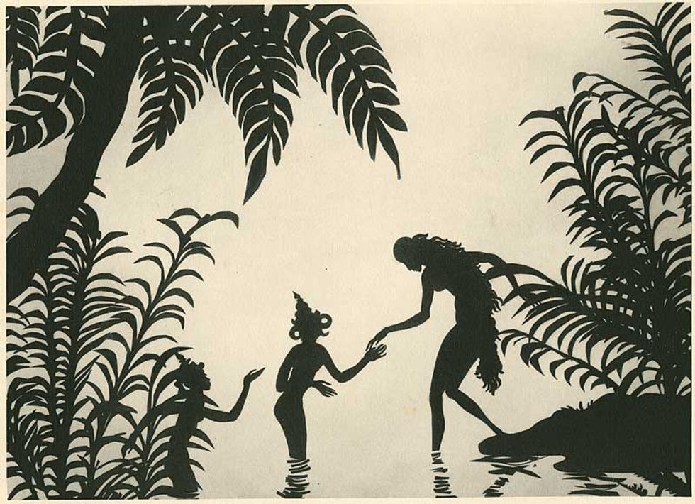 “The characters […] have no real existence. They have been designed and cut out of a sheet of black paper and are made to move on backgrounds lit from below and photographed from above. This brief explanation is not offered as an apology for their lack of life but to make you marvel that they have so much.” [Source]