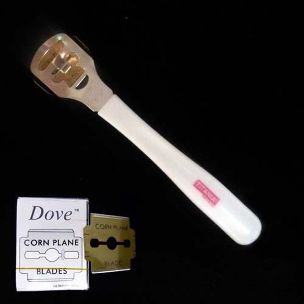 Say no to the callus remover! This shaver is usually illegal in salons, but many techs still use it. The shaver coupled with a strong callus remover gel damages sensitive feet and can cause nicks in the skin.