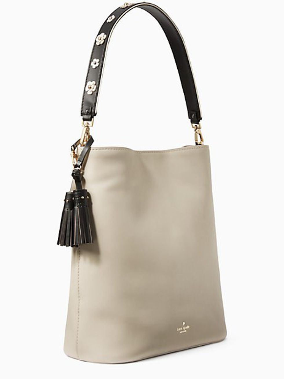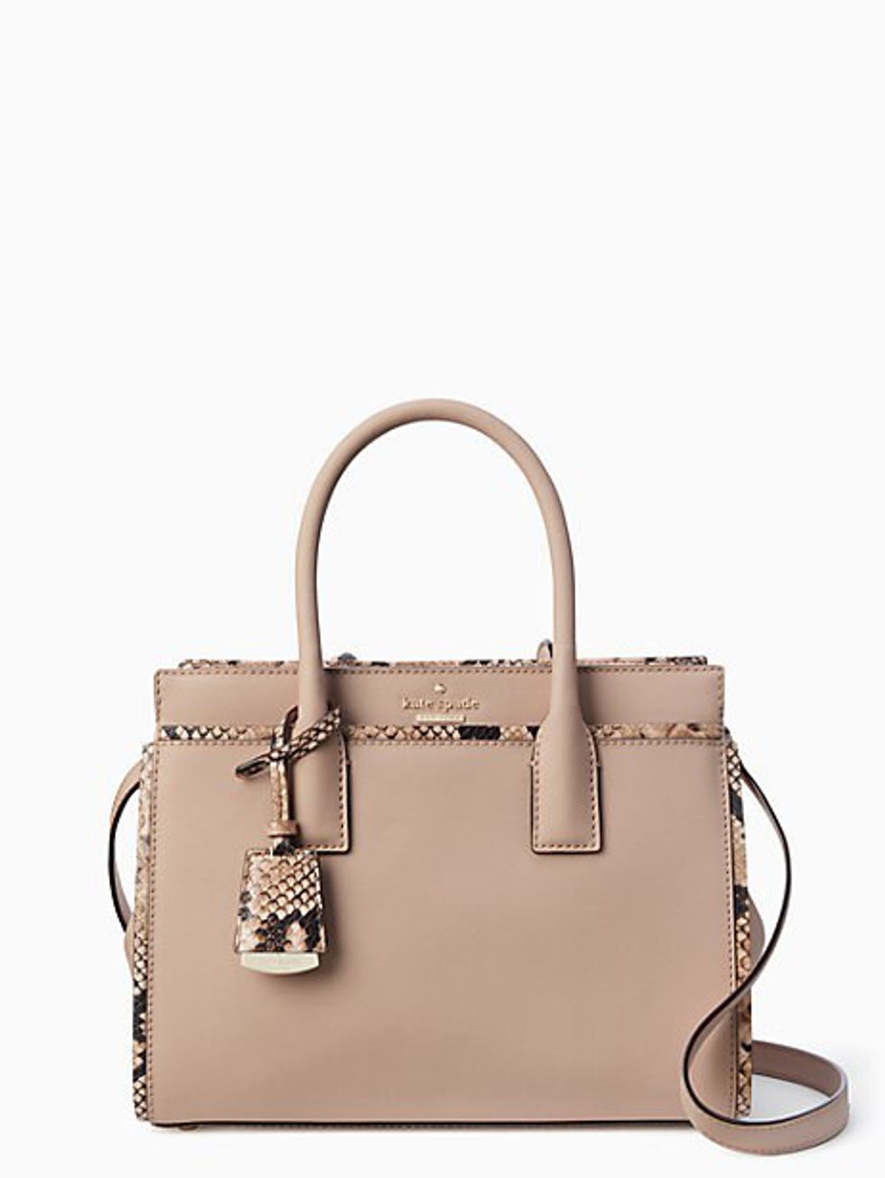 One of the newer additions to the Kate Spade collection is the many different snake skin purses featured in Cameron Street. This particular bag comes in a range of colors and also in an adorable over-the-shoulder bag that's just the right size to make the perfect accent piece to any outfit. The color in the picture above makes this purse extremely feminine and classic while the snake skin accents bring an edgier fashion to the bag.