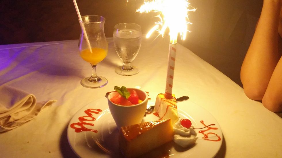 Two years ago, when I was a high school senior I was dating a junior who prom-posed to me in the most adorable way possible. He took me to Aruba, and prom-posed on the beach with a dessert that had sparkers on it and spelled out prom. Don't believe me?