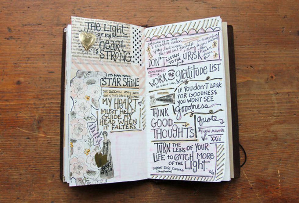 Everyone knows that if someone journals, they must have a wide arrangement of pens and pencils to accompany their notebook obsession, so get some use out of them! Pick a color to go with, whether it's green for July or blue for December, and let it influence the different doodles you might include, flora and fauna that inspire your pages, and the outlines of the pages you create.