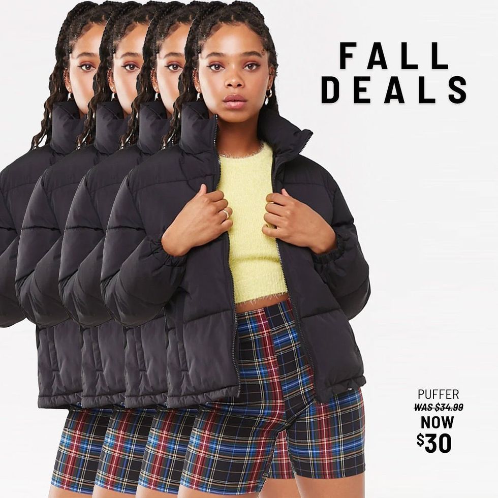 RIP Forever 21, but hey they aren't going down without a fight. You can find plenty of deals right now on their website, and my top pick would this simple black puffer which will be great for once it starts snowing. It's also available in plus sizes!
