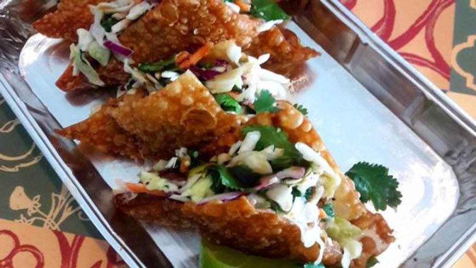 Wontons can be found at Walmart, Publix, key food, or Target depending on the state or area you live in. This can be bought for $4 max and vary in sizes. You can make it into an egg roll or into small bite-sized eats that are flavorful and quick. I personally like to keep it simple by adding chicken, onions, garlic, and Asian sesame ginger sauce for the filling, but you can feel free to add more items if you'd like. This is a twist on the Applebees chicken wonton tacos.