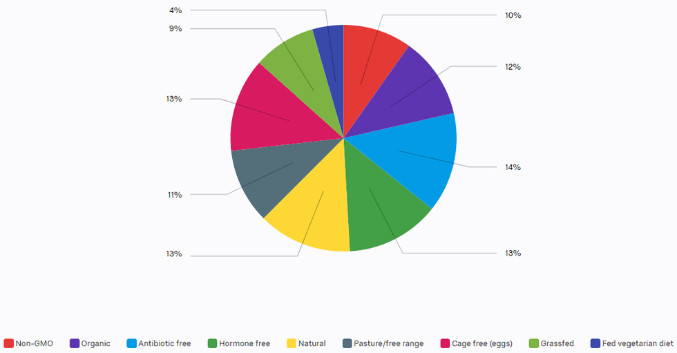 In the graph above, you can see that labels such as antibiotic free and hormone free generally influence the purchase decisions of people who allow food labeling to influence their decisions. Notably, many people stated in the comments section that they didn't allow food labels to trick them into purchasing certain foods over the other, rather they would do what they could to avoid purchasing products that idealized fear-mongering labeling to make more profits.