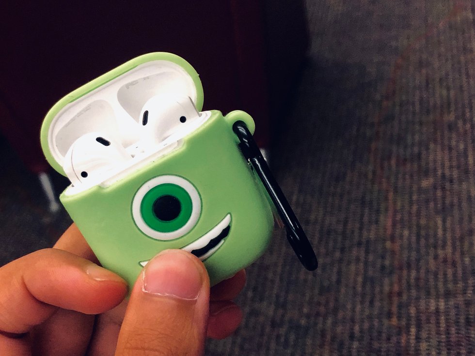 In the weeks leading up to school, I decided to give my AirPods case some personality since I didn't get the engraving. So I went to Amazon and purchased a Mike Wazowski case. Let me tell you that the case definitely helps me stand out from the crowd. It was easy to slip on and now whenever I am looking for my case it is super easy to spot it. Anyways, let's discuss the actual product. The pros and cons now that I've used these things for two months or so.