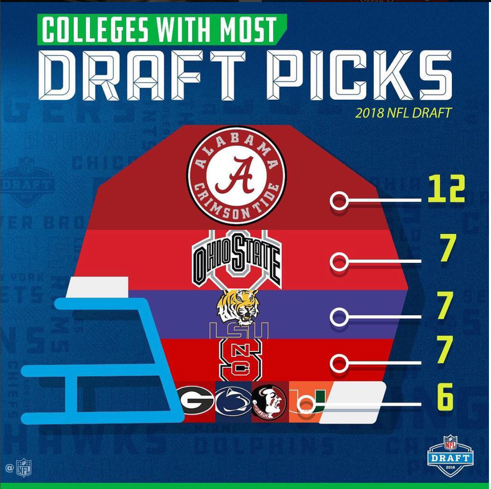 The 2018 NFL draft has come and gone, and again, the Alabama Crimson Tide ended on top. An outstanding 12 players got selected in the draft, and four of them coming in the first round. This total topped last year’s number of ten. Alabama broke a school and SEC record with most players drafted.