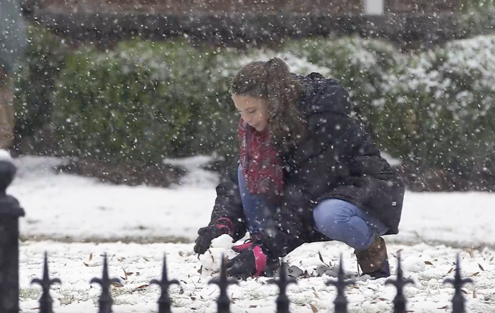 "This is the first time I've ever seen snow fall!" "Why is it so cold?" "I didn't expect it to be wet." "Let's go build a snowman" — Students from the South, probably