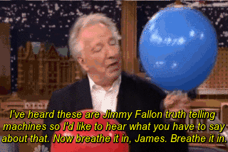 Alan Rickman and Jimmy Fallon having a conversation while sucking helium — "The Tonight Show Starring Jimmy Fallon" (2015)