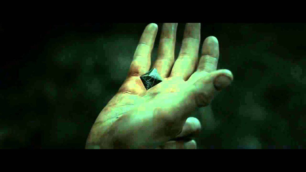 Three wizard brothers come to a river that's too treacherous to cross, so they make a bridge with their wands. But as they're crossing they're met by a hooded figure, Death, who is upset they've “cheated” him. But Death, being cunning, acts like he's impressed. He offers them each a prize for outwitting him. The first brother asks for an extremely powerful wand — and so he is given the Elder Wand. The second brother asks for the power to bring people back to life and is handed the resurrection stone. The third brother, who senses that Death may have ulterior motives, asks for something that will allow him to move forward without being followed by Death himself. And so Death hands him an invisibility cloak that hides the wearer from even his own gaze. For two of the three brothers, the story doesn't end well. The first brother is murdered over the Elder Wand. The second brother kills himself after a woman he brings back to life returns differently and he decides to join her in the void. The third brother lives to be an old man, then hands the cloak to his son, and "greets Death as an old friend."