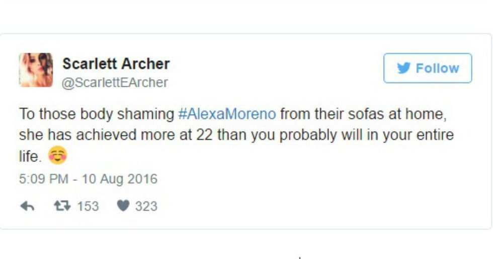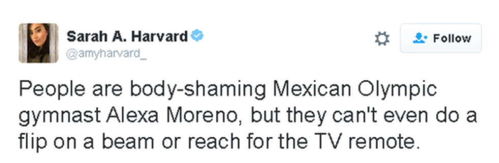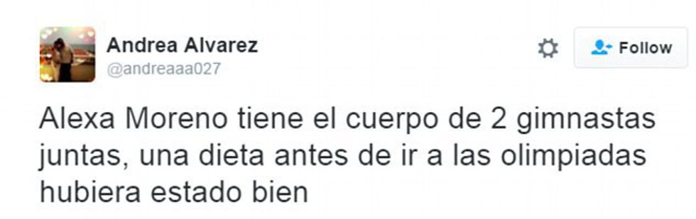 Body shaming has sadly become very common in today's society, and this year for the 2016 Olympics one athlete was the target to yet another twitter body shame trend. Alexa Moreno is a 22-year-old gymnast representing Mexico in this years Olympics. Alexa is a 4 foot 10 inch athlete that weighs just 99 pounds and is competing in one of the worlds most prestigious athletic competitions, yet to some her body just isn't up to par.