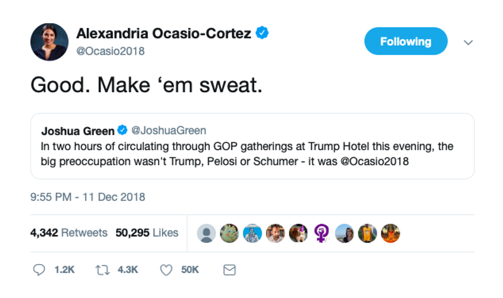 You might not agree with her ideas or her platform, but Ocasio-Cortez has shown herself to be intolerant of inequality and bigotry and is unafraid to speak out against injustice and perceived corruption in our government. An attitude like hers is exactly what our Congress needs in this Donald Trump, hatred-filled era.