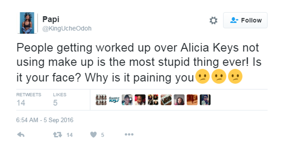I am personally all for the movement. It's nice to see a celebrity who's confident in her own, natural skin. Talk about setting examples for other women and young girls, Alicia Keys is all that with this one. The use of make-up is so embedded in our society and ourselves to the point where many women/girls think they NEED it; whether it's to cover up or look "better." While many women in the media are insecure about their looks, Alicia is in fact opposite, and I don't blame her. Shout out to her for showing us that we can be happy, secure and confident without make-up.