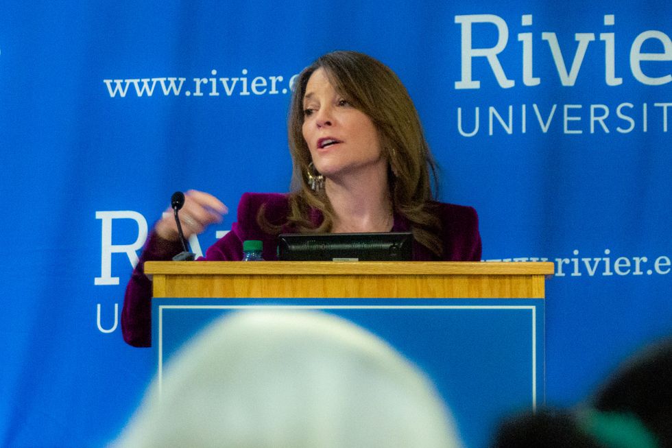 Marianne Williamson is a self-help author, new age lecturer, and activist. Williamson has written 13 books, four of which have been number one New York Times Best Sellers. Some of her work includes the founding of Project Angel Food. Project Angel Food is a food delivery program, run by volunteers, which serves home-bound people with AIDS and other life-threatening illnesses. Marianne Williamson has proposed the government fund $100 billion in reparations for slavery and an expanded budget for economic and education projects.