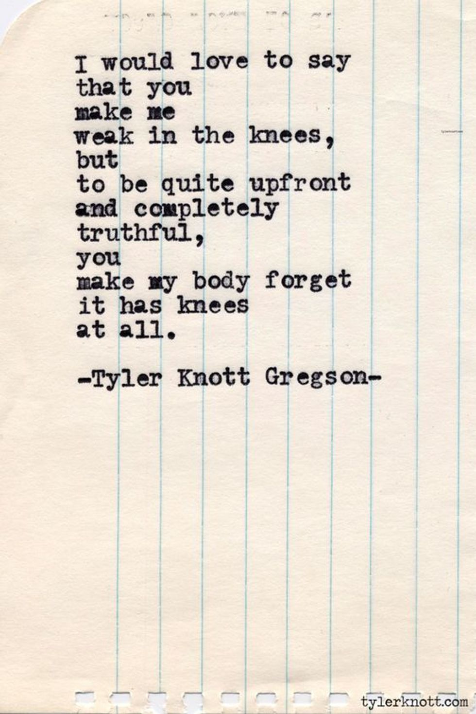 Tyler Knott is one of the better-known poets on social media. I had the pleasure of hearing him speak a few months back and an overwhelming number of people proclaimed that Gregson had saved their lives with his words in their darkest hour. Gregson's poetry is the kind that makes you blush because he seems to know exactly what readers are thinking- even if you want to keep those thoughts a secret. He has a way with placing emotions we think no one else feels or understands on paper. Tyler Knott Gregson won the world over with his unique "typewriter series," "blackout poetry," and writing daily haikus. He has released two books entitled Chasers of the Light and All the Words are Yours.