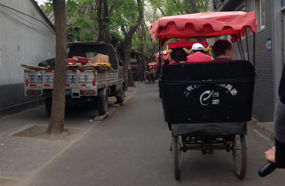 I’m riding on the back of a rickshaw tour in the tepid humidity of Chinese spring. With my Vera Bradley bag in one hand and iPhone 5 in the other, I am hidden behind the lens and screen, snapping away at every grandiose building embellished with fancy-looking Chinese characters, and all the while embodying every stereotype that is expected of a White-Female-American-tourist visiting China. But something else happens that I couldn’t catch on camera.