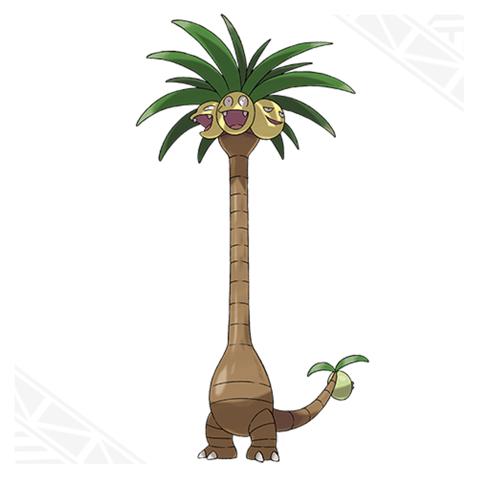 I just... I don't even know what's happening right now. It's literally a palm tree. It looks like it got its coconut heads stuck inside the trunk of a car, and then the car just sped off and left its body behind. I'm pretty sure the only Pokemon that's more of a catastrophe than Alolan Exeggutor is Trubbish, which is a pile of garbage. To top it off, why is this walking palm tree a dragon type, of all things? Charizard can't be a dragon type, but this can? I sense injustice here. I will admit, though, Alolan Exeggutor does make great meme material.