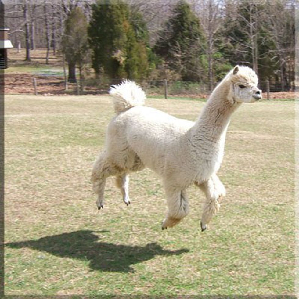 They can even rock human hairstyles.This is an alpaca mid-leap.