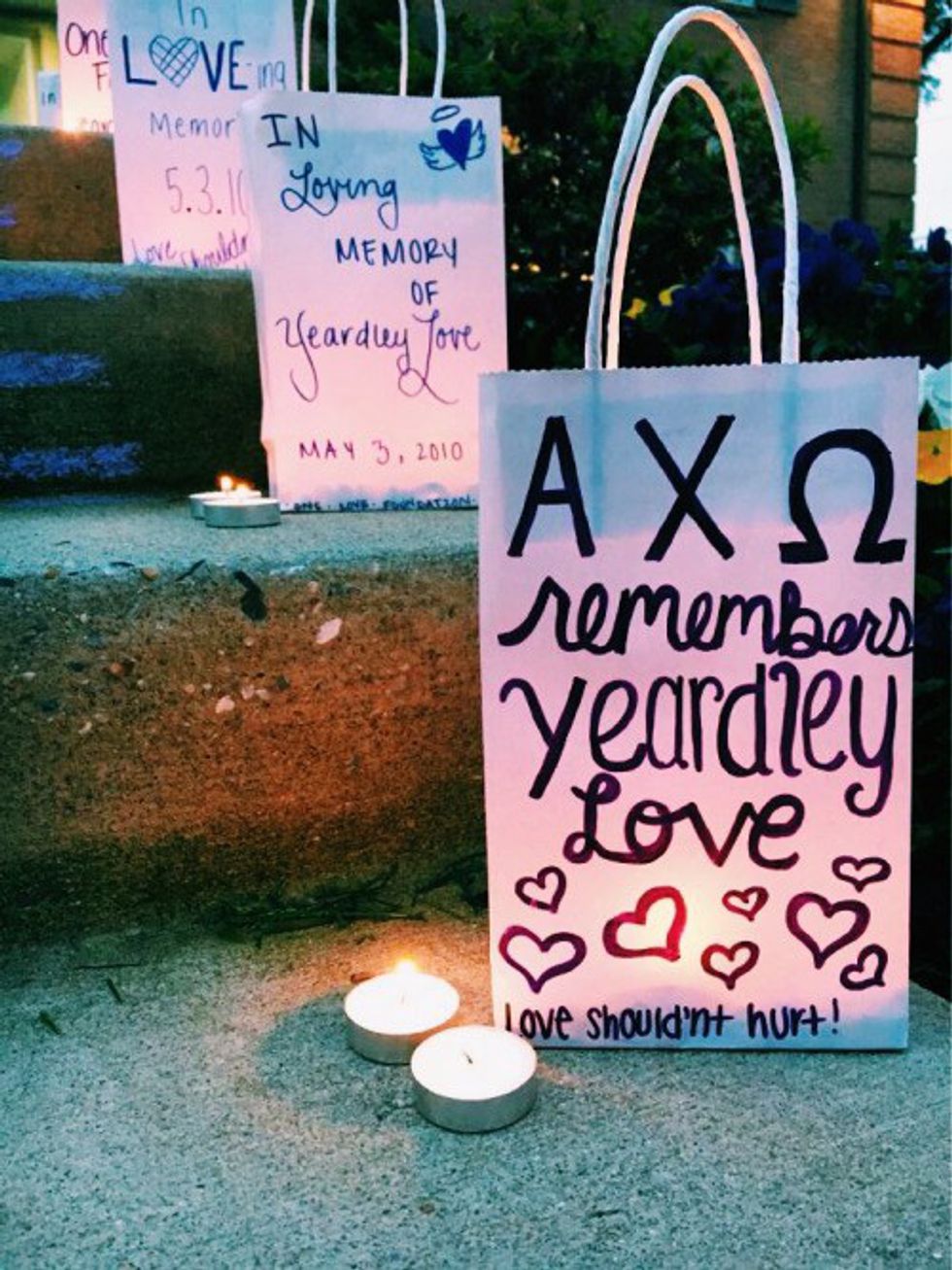 Alpha Chi Omega's local philanthropy is domestic violence awareness, which strives to advocate for safe and healthy relationships, and minimize the amount of domestic abuse and violence we unfortunately see in the world.