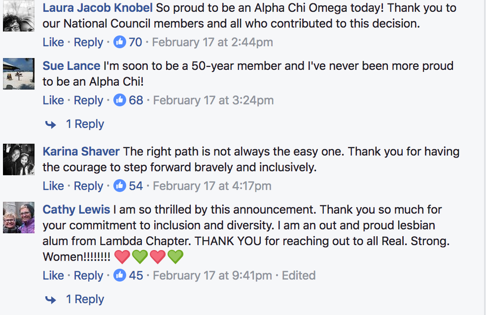 According to Cosmopolitan, of the 26 major national sororities (over 4 million women strong) that are on campuses nation-wide, only three of them have policies that state they are inclusive of transgender women. These three sororities include Delta Gamma, Kappa Kappa Gamma and Sigma Sigma Sigma. But now AXO can be added to this list. AXO's National Council decided to redefine the concept of sisterhood and the sorority experience overall after taking into account the current stance on gender and how gender is not necessarily the gender you were born with- also, noting that transgender women have reached out to AXO chapter's seeking membership.