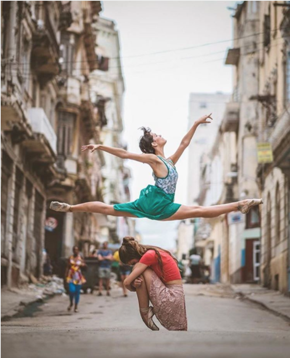 Jeté [verb]: To jump from one foot to the other while gliding through the air.