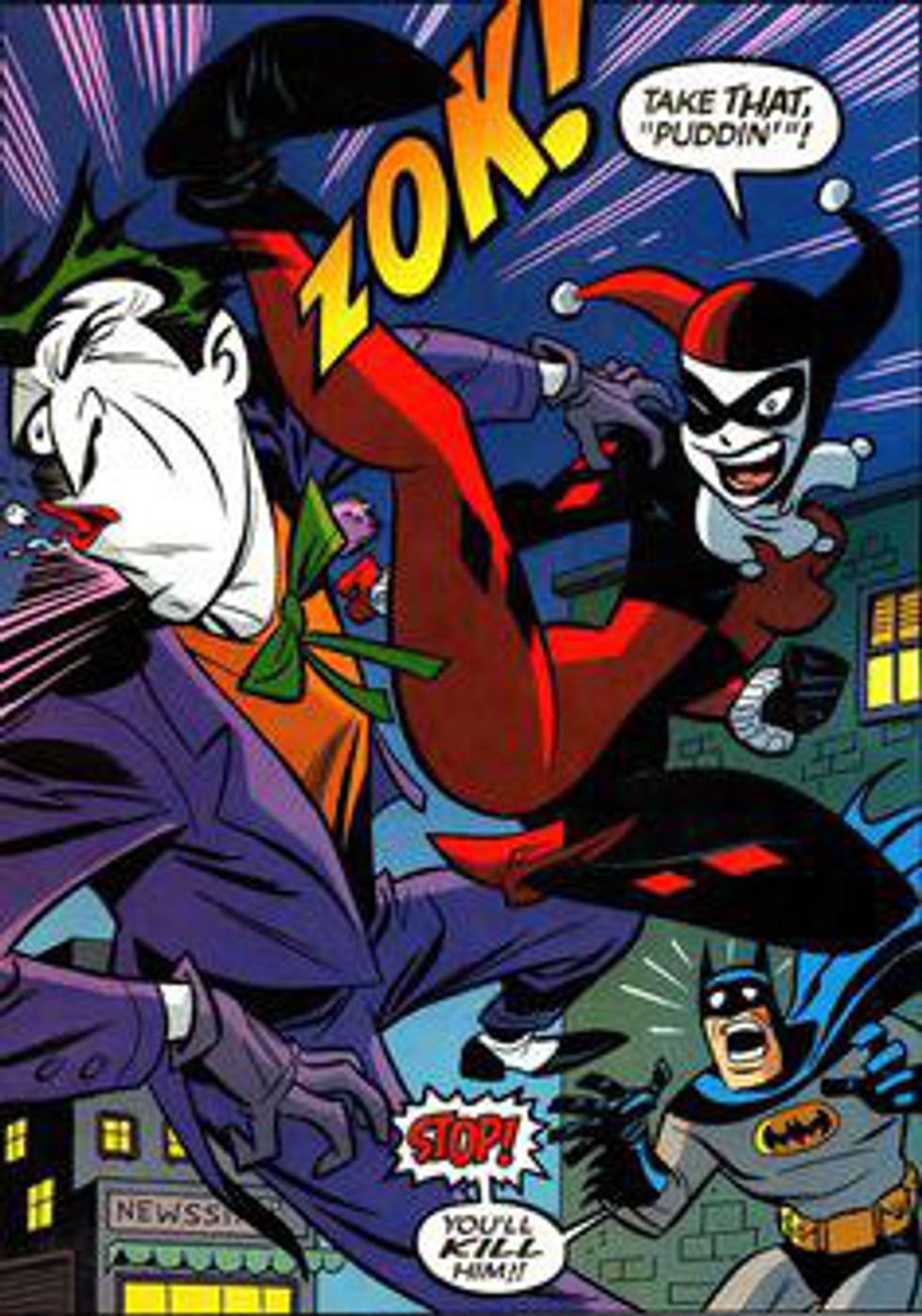 If anything, these comics show you what isn’t normal for a relationship. Harley would do anything for the Joker no matter the cost and he is so mentally tarnished that it's surprising he could even feel "love." But they’re villains and that’s what they embody. You’re not supposed to idolize them. Most right-minded people that read these comics aren’t going to feel taken by how romantic their relationship is. I’m not offended by it though. The Joker is just as abusive to himself as he is Harley and the instances of abuse are not the only interactions between them. There are scenes that contain exchanges of love (even if it is twisted), and also scenes where Harley is abusing the Joker. I love these two characters for the exact reason people hate them. They are twisted, deranged, disturbed, unbalanced, mad, but they have a story that is stirring, that isn’t flat or boring or typical. There are truths in their madness.
