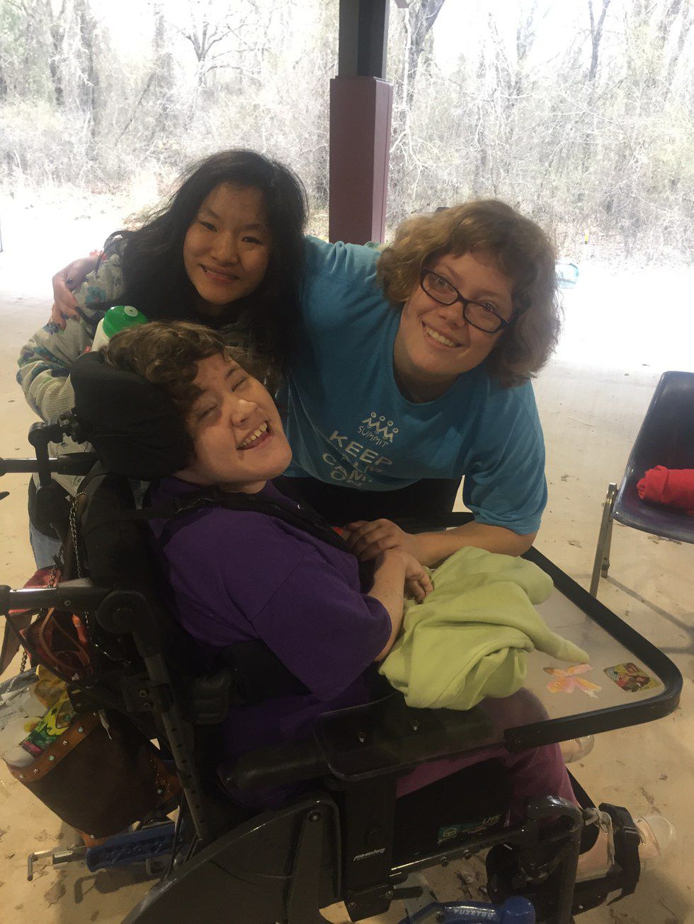 I went to Camp Summit, a camp with a mission statement of providing barrier-free outdoor experiences that promote personal growth and foster independence for children and adults with disabilities. It wasn't my first time volunteering in a place that offered services for people with disabilities, but I was still nervous because it would be the most work I've done. I was terrified that I'd mess up or drop someone when lifting from a wheelchair to their bed or wherever. I was afraid that I'd forget everything I had just learned in training the day before campers arrived. But we assisted with everyday activities that most people take for granted their ability to perform. Once the campers arrived and we started to get to know them, the work seemed less like work and more like hanging out at camp with friends.