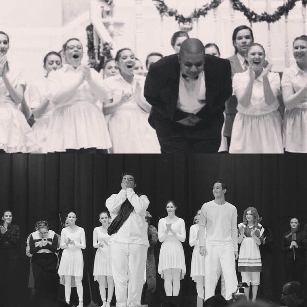 Before then I had no musical theatre experience whatsoever! I sang in the choir and danced in talent shows, but never acted in a full two-hour show. I went in being a little nervous, but not really dreading anything because I didn't know what to expect. I sang "NYC" and "Easy Street," auditioned as the character of Rooster, and danced to "Easy Street" as well. The cast list came out and I found out I didn't get Rooster, but a role that I will forever be grateful for, Drake the butler. He ended up being one of the six prominent characters in the show with almost as much as stage time as the red-headed orphan herself.