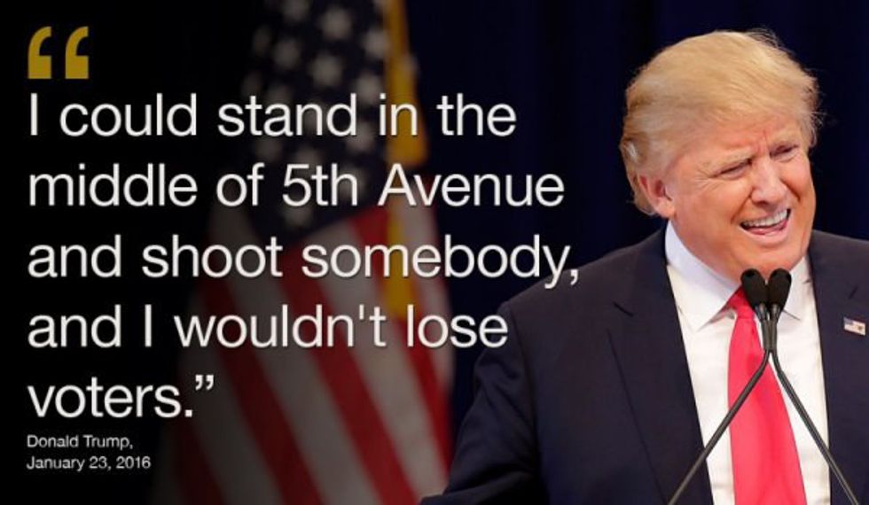 Remember when Donald Trump running for president was just a joke? Everyone laughed and thought he wouldn't last in the election. Well, congratulations America. You have now elected this man as President of the United States. This man is now the commander in chief for the next four years. Frankly, I have a hard time calling him a man. He is no man, he is a monster. He is a racist, sexist, bigot and I am terrified for our country.