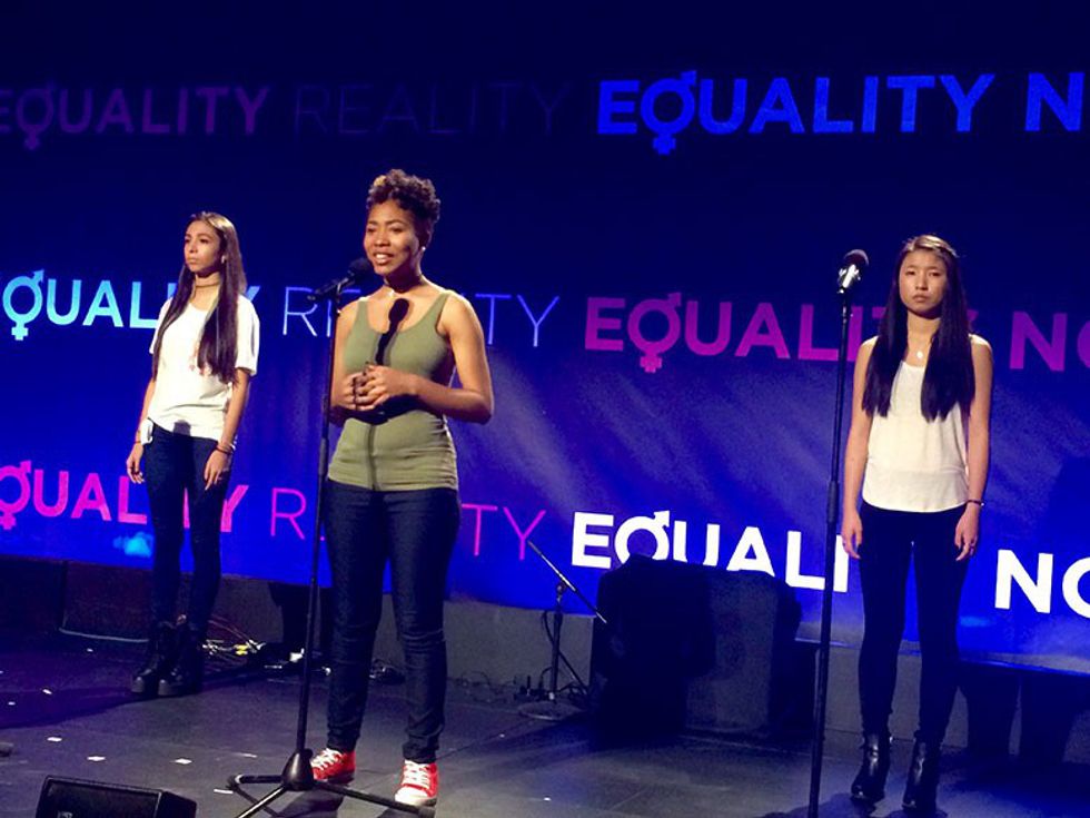 Best known as Riley Matthews on Disney show "Girl Meets World," fourteen-year-old Rowan Blanchard established herself as a young feminist role model when her Instagram post about the importance of intersectionality and inclusive feminism went viral last year. Blanchard later spoke at the UN Women and US National Committee's 2016 conference, addressing gender stereotypes, objectification of women in the media, and the lack of women in STEM fields. Said Blanchard, "When I was in preschool, I played catch with the other kids and I was told I threw like a girl. I've identified as a feminist ever since."