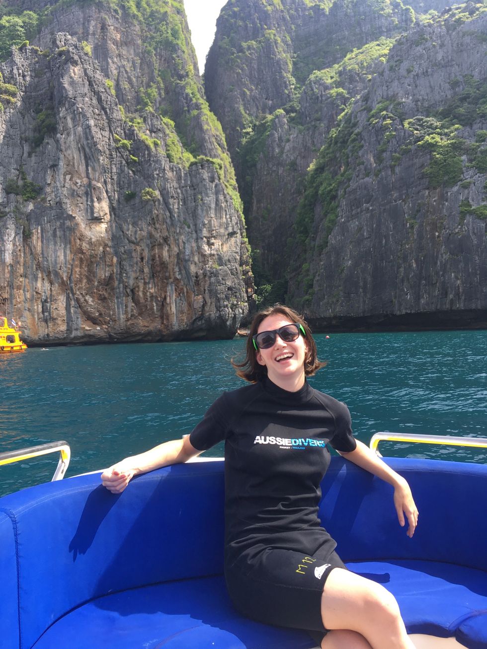 I was able to see the famous Phi Phi islands and eat lunch at the same beach in the movie "The Beach with Leonardo DiCaprio." The boat took us to the beach, Maya Bay, where we were able to swim in the Bay and eat lunch at the same time without having to deal with all the people on the beach. Diving around the Phi Phi islands was full of brightly colored corals and animals. After diving around the Phi Phi Islands we went to dive at Shark Point and even though I didn't see any sharks I saw some super cool corals and animals.