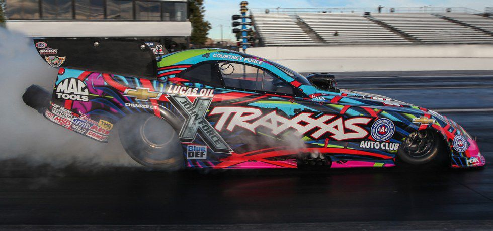 Taking after dad, John Force, and big sisters Ashley Force Hood and Brittany Force, Courtney got her first career win in 2009, at the age of 21. She's one of two current female Funny Car drivers for NHRA. She also holds the record for most Funny Car wins by a female driver, and is the holder of the 100th win for women in NHRA.