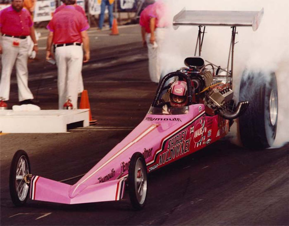 Shirley started street racing in the 1950s, but she first got her NHRA license in 1965."Cha Cha", one of her nicknames, was the first woman to recieve a license for a Top Fuel Dragster. She was the first lady in racing, and fought tooth and nail for us gal's out here on the asphalt until her retirement from racing in 2003.