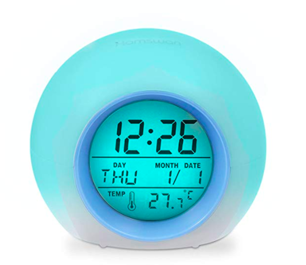 Trust me when I say this: your phone alarm is not a reliable alarm clock. I can't tell you how many times I overslept for class and meetings because my phone's alarm decided it was going to screw me over that day. Don't make my mistakes. Get a cool alarm clock like this one, which tells you the time, day, date, and temperature outside. Plus, it glows seven different colors: blue, yellow, purple, pink, aqua, orange, and green.