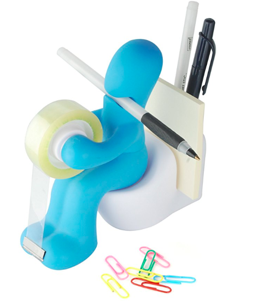 The key to being a successful college student is organization. The other key to being a successful college student is to not take yourself too seriously. This knick-knack perfectly encompasses both. This guy will hold your pen, notepad, and paperclips while also dispensing tape. By the way, the little guy pops off his porcelain throne, and you keep the paperclips in the toilet. Perfect to add a bit of class to your desk.