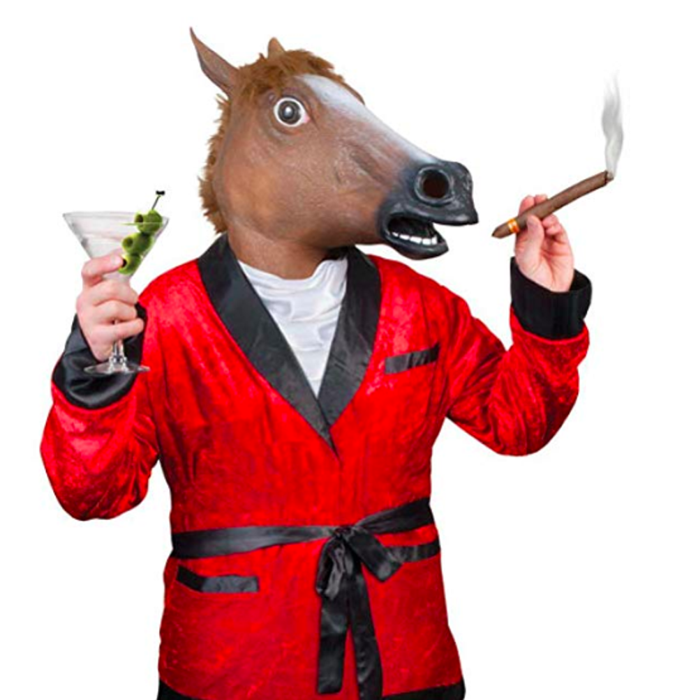 Do you just love being obnoxious? Do you get your kicks from annoying everyone on your floor? Do you just need a quick and easy Halloween costume? The horse mask can satisfy all your horrible, horrible needs. Hang it on your bedpost! Put it on the shower head! Wear it to the meeting with your RA to address the atrocities you've put your floor mates through!