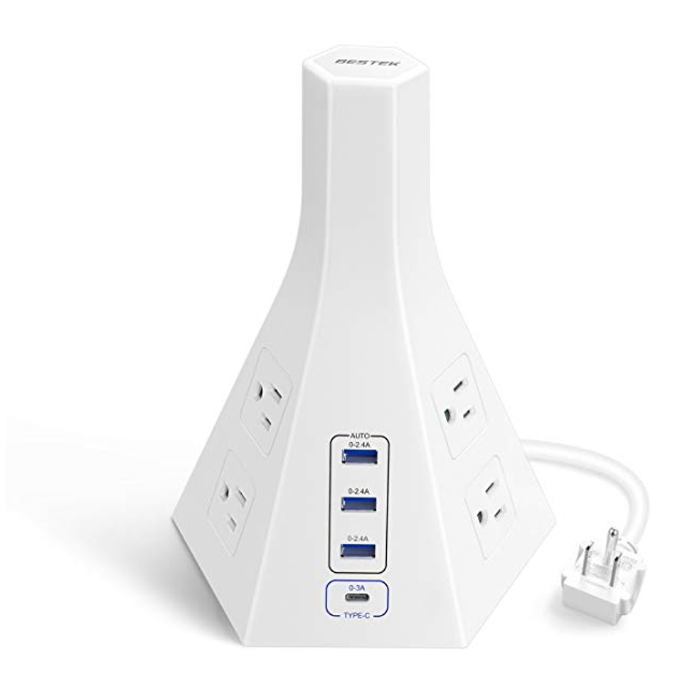 Let's face it, we all have more devices than we would like to admit and when you are using more than one, having two outlets just isn't enough. This tower not only has 6 outlets, but three additional USB plugs as well. You can charge your laptop, phone, tablet, literally anything you can think of and you can plug it into this tower.