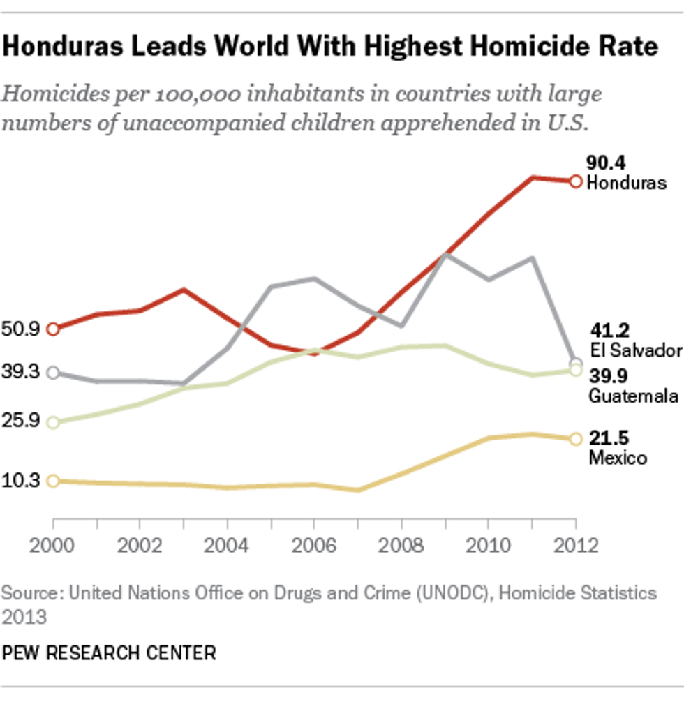 Right now, America's main sources of violence are coming from outside. How do you think it feels like when it is internationally acknowledged that your nation's main source of terrorism is amid its own people? I know I felt a combination of sadness, vulnerability and disgust. While reading an article by the Pew Research Center, my heart shattered when I was reminded of how "Salvadoran and Honduran children... perceive the risk of traveling alone to the U.S. preferable to remaining at home."