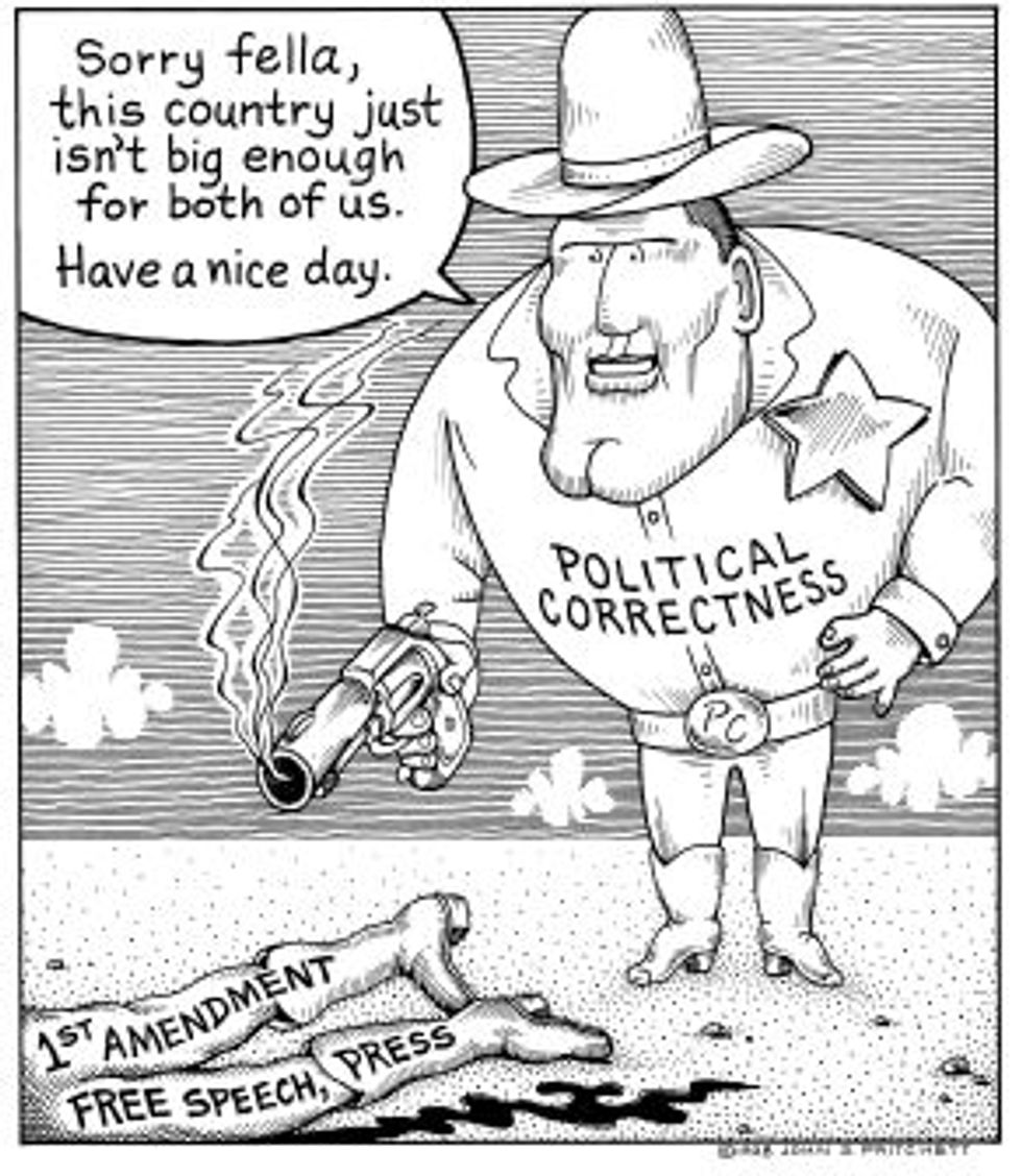 Urban Dictionary defines political correctness in the best way: “a way that we speak in America so we don't offend whining pussies. Only pathetically weak people that don't have the balls to say what they feel and mean are politically correct pussies.”