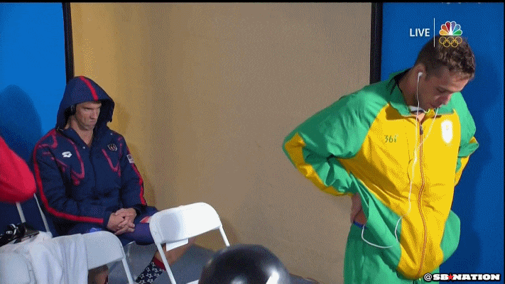 And guess what, he knows it. When he inevitably beat Chad le Clos at the Men's 200 meter Butterfly final, the same event that he lost to le Clos in 2012, Michael had to give a little jab at his ol' friend Chad.