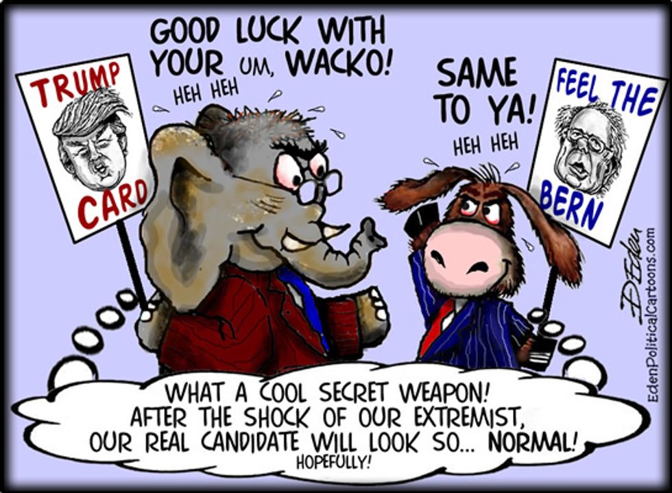 With extremes on both sides, politics has turned into an uncomfortably bad, yet realistic, SNL skit-- the kind you wish you could laugh at, but it touches on something way too real. At this point, I think we're all grasping, hoping, and praying that someone will come on our TV and phone screens and tell us that this whole thing was a joke, we can forget the damage that some of the candidates have caused, and that the real candidates are will be revealed shortly.