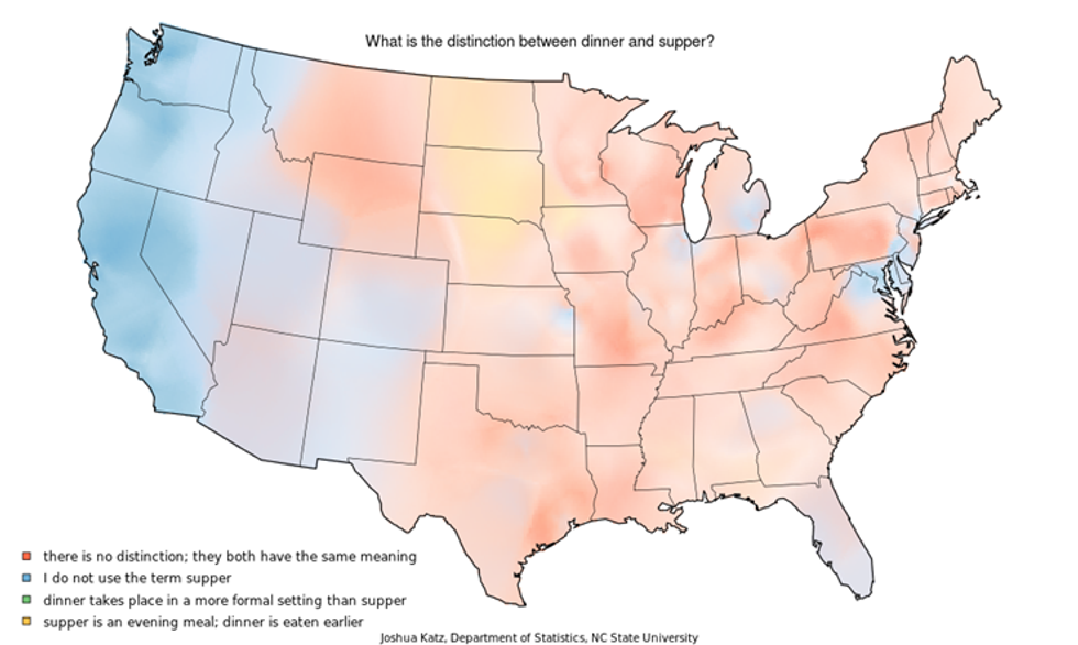 Traditionally Northern states use the term dinner while Southern sates use the term supper.
